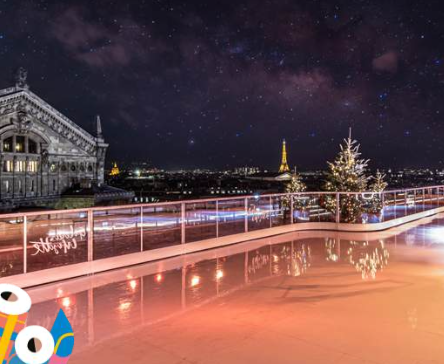 Tra i tetti di Parigi, con vista mozzafiato sulla Tour Eiffel e le luci natalizie della città, grandi e piccoli potranno pattinare in un’atmosfera magica.